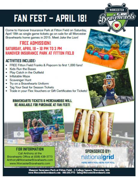 On Saturday, April 18th at 12:00 p.m., the Worcester Bravehearts will be hosting their annual "Fan Fest" event at Hanover Insurance Park at Fitton Field. This is a FREE event full of activities such as:
