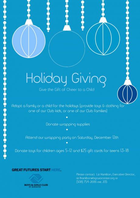 Every year, our Holiday Giving program provides gifts to over 2,000 underprivileged youth and over 200 families. This year, we invite you to be a part of our mission of serving as many area youth as possible, ensuring they have a special holiday season. There are several ways to help: