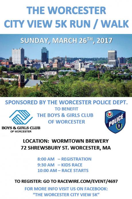 We’re so excited and grateful to be a part of the Worcester City View 5K Run/Walk, sponsored by the Worcester Police Department. The event will take place at Wormtown Brewery on Sunday, March 26th, with registration beginning at 8:00 a.m. The kid race will kick off the morning at 9:30 a.m. followed by the adult race at 10:00 a.m. Proceeds from this event will benefit the 6,000 youth we serve each year. To register online, please go to my.racewire.com/event/4697. We hope to see you there!