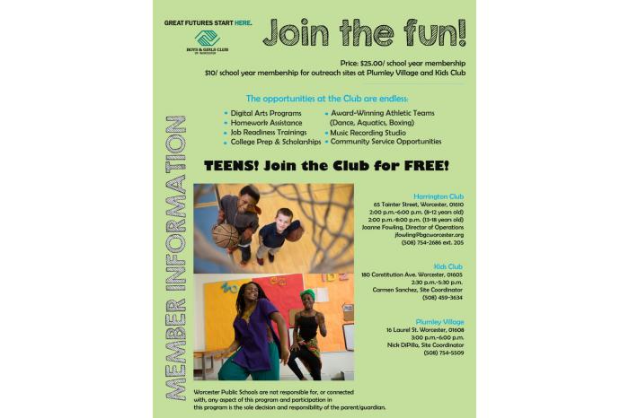 We are excited to begin another school year here at the Club. The first official day of programming was held on Monday, September 11th, and the Club has been in full force ever since. We welcome all children, ages 8-18, to visit our Club and witness for themselves all of the different activities happening including athletics, job readiness, homework help, college prep, dinner 5 nights a week, music, and more. Please see the attached brochures to read up on programs for kids off all ages as well as specific programs for teens. For more information on becoming a Club member, including mandatory new member orientations, please contact our front desk at (508) 754-2686. We look forward to meeting you!