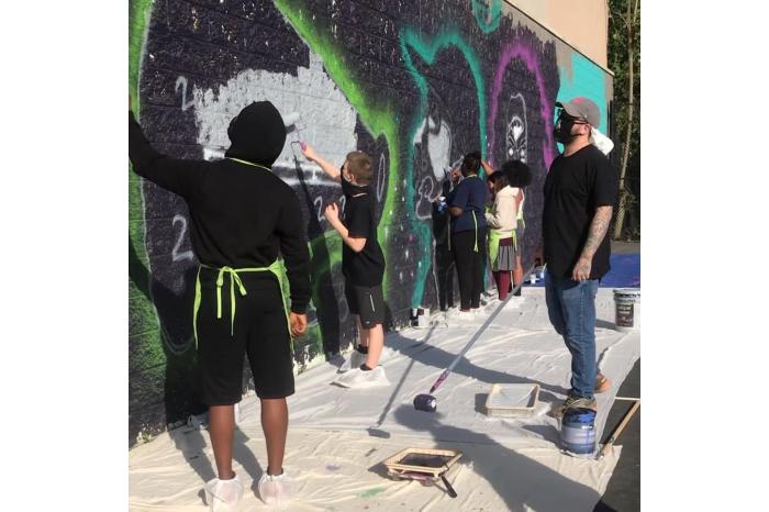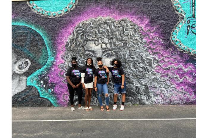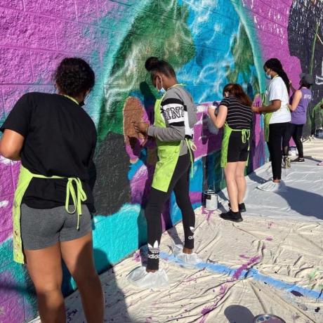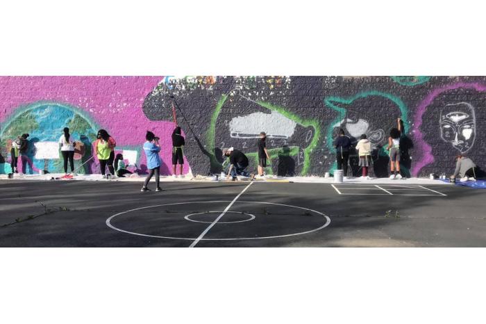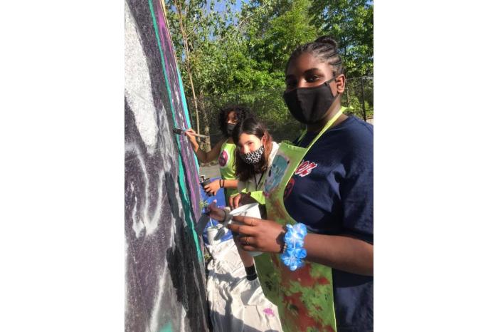 This mural project is a partnership between Main IDEA Youth & Arts and the Boys & Girls Club of Worcester. Youth ages 11-18 submitted design entries for the mural with the prompt, “Injustice anywhere is a threat to justice everywhere” (Martin Luther King Jr.). Two youth artists’ designs were chosen, Niyah & Sarai, and youth arts teams consisting of both Main IDEA youth and Boys & Girls Club members worked to co-paint the design, along with the lead & assistant artists, Jennessa Burks and Eamon Gillen. This program is supported by a grant from the Greater Worcester Community Foundation and by the Worcester Arts Council/ Mass Cultural Council.