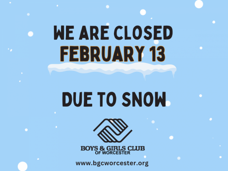 Due to Worcester Public Schools' closure, all Club sites will be closed today, February 13. Stay safe and warm. See you tomorrow! Publication Date: February 13, 2024